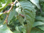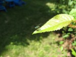 There was an insect on a leaf (shown in last photo), but I don’t believe it had anything to do with the holes. The disease is called Shot Hole disease, caused by the bacterium Xanthomonas arboricola pv. pruni. according to http://agri.nv.gov/PLANT_PATHOLOGY/2006/ShotHoleDisease.pdf