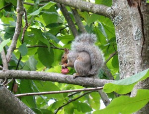 Magnolia acuminata – Cucumber Magnolia, squirrel eating fruit