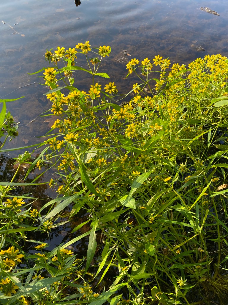 Bidens cernua is also known as Nodding Beggarticks. It can grow very tall and is usually found in wet sites, along ponds, rivers and lakes. It’s native to North America and parts of Europe. You may find ducks feeding on the seeds of this plant after the flowers begin their decline. Bloom time is the end of August through September in the northeast U.S. I found these on September 16, 2022 in CT.